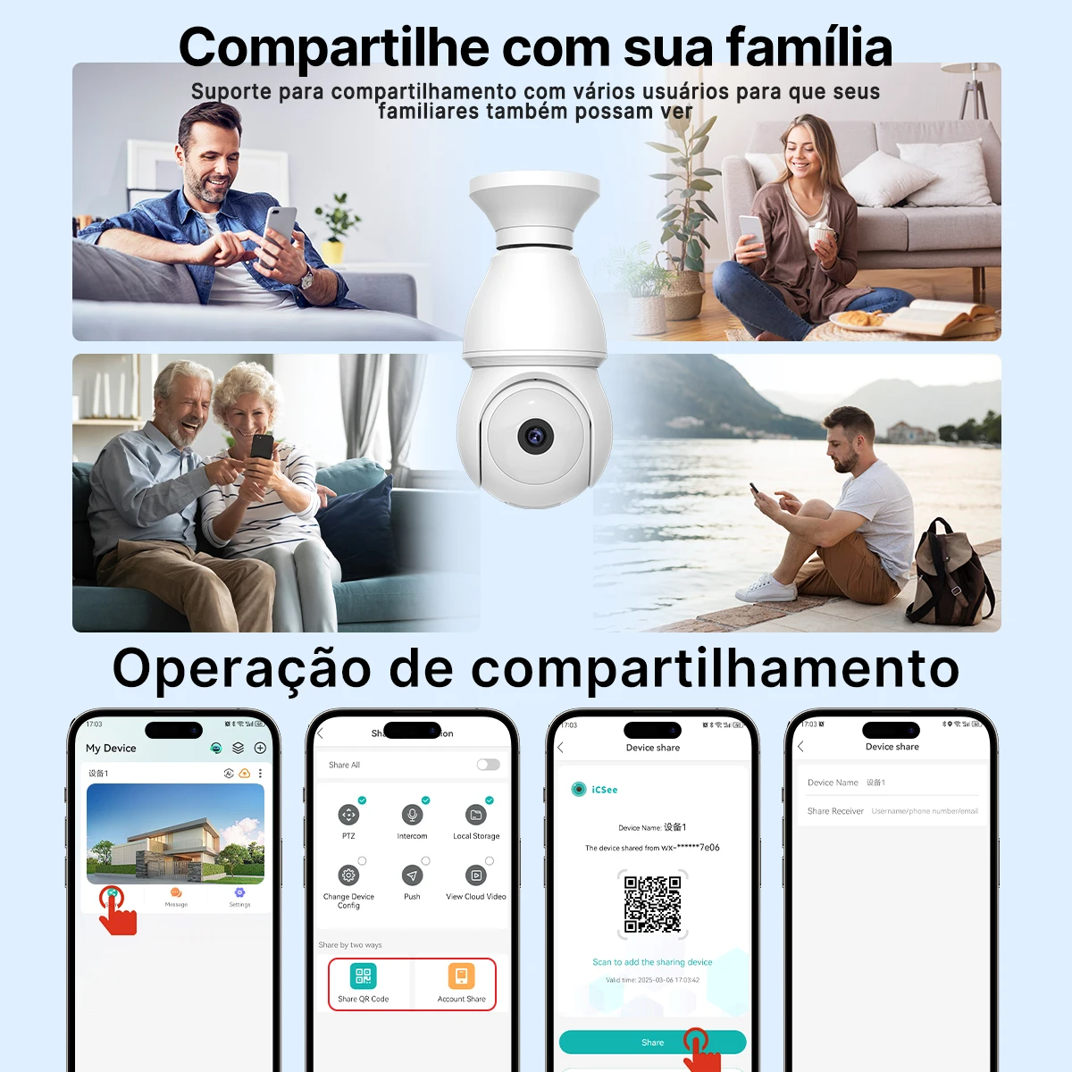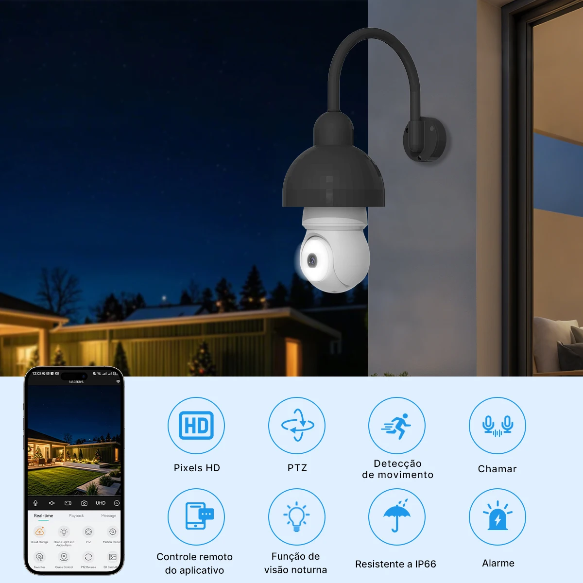 Permite acompanhar as imagens diretamente pelo celular ou computador, oferecendo: