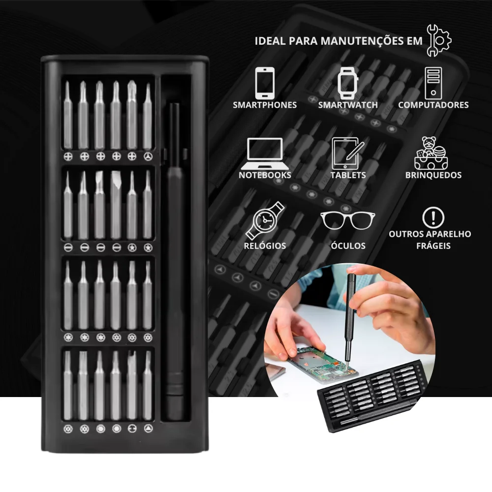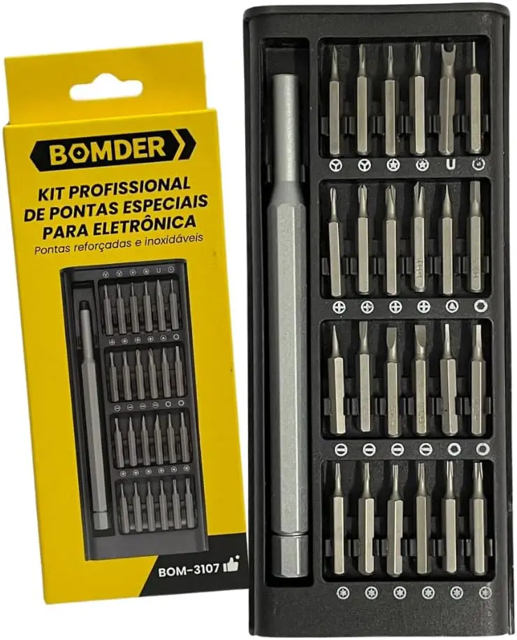 Com uma seleção completa de conjunto com 24 pontas diferentes, este conjunto permite trabalhar com diversos tipos de parafusos e equipamentos, como: