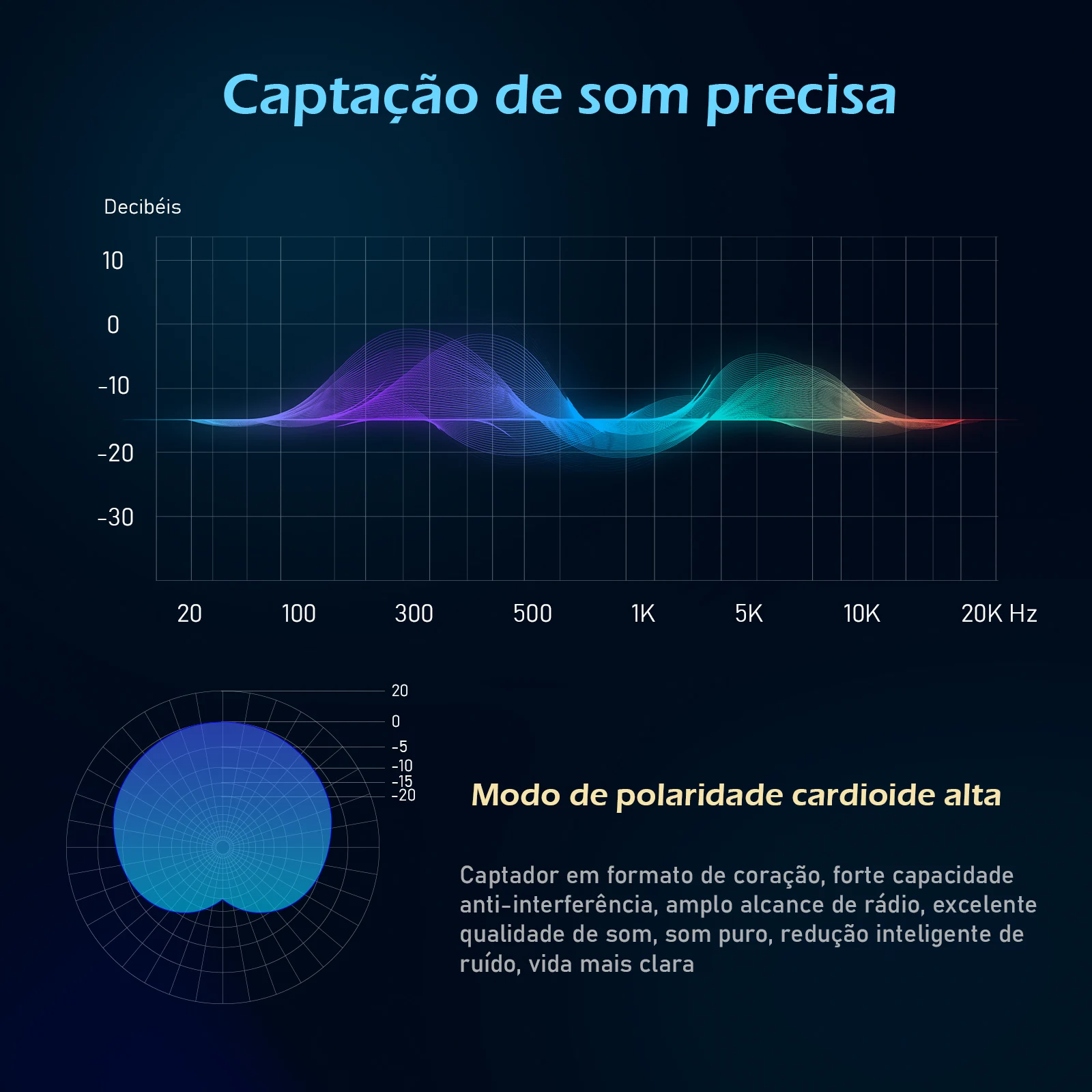 Tecnologia condensadora que proporciona maior sensibilidade e fidelidade sonora nas gravações.