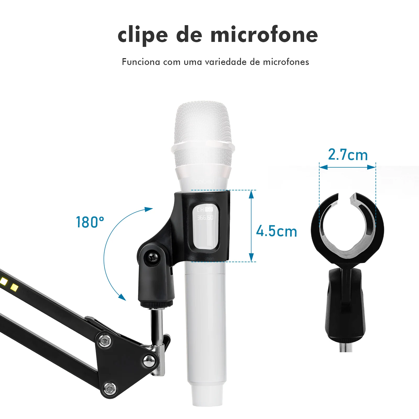 Fácil de montar e compatível com diversos modelos de microfones.