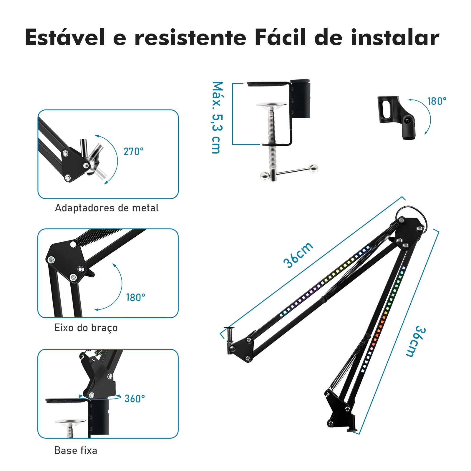 🦾 Braço articulado com ajuste completo